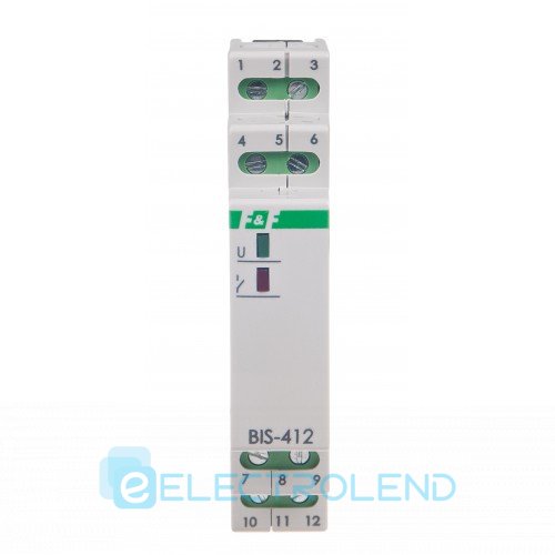 - BIS-412M-230 V – с памятью состояния контактов. После пропадания напряжения питания реле, и повторном появлении напряжения питания, контакты реле вернутся к положению в котором они были до пропадания напряжения;