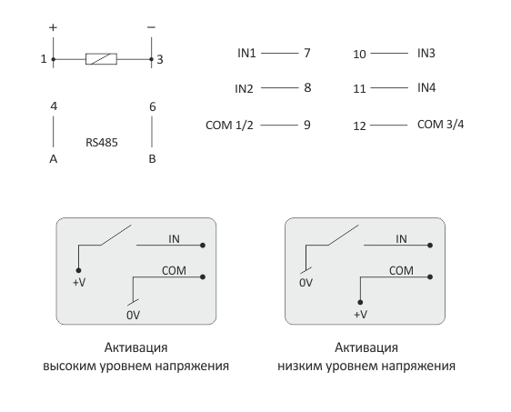 * вибор опции активации сосотояния 1: высоким либо низким уровнем напряжения, замыканием либо размыканием электрических цепей на входах