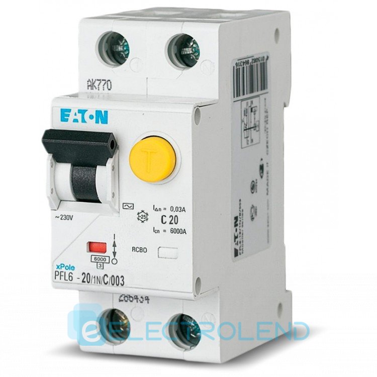 Дифференциальный автомат PFL6-20/1N/C/003 (286468) Eaton