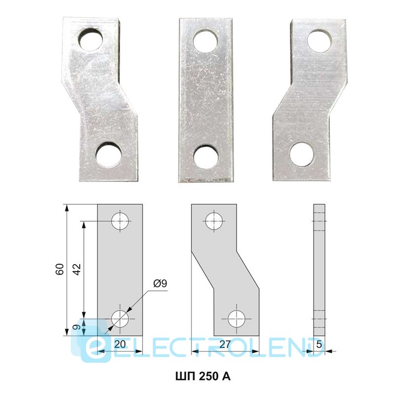 Шина переходная габарит 250А луженая медь комплект 3шт.