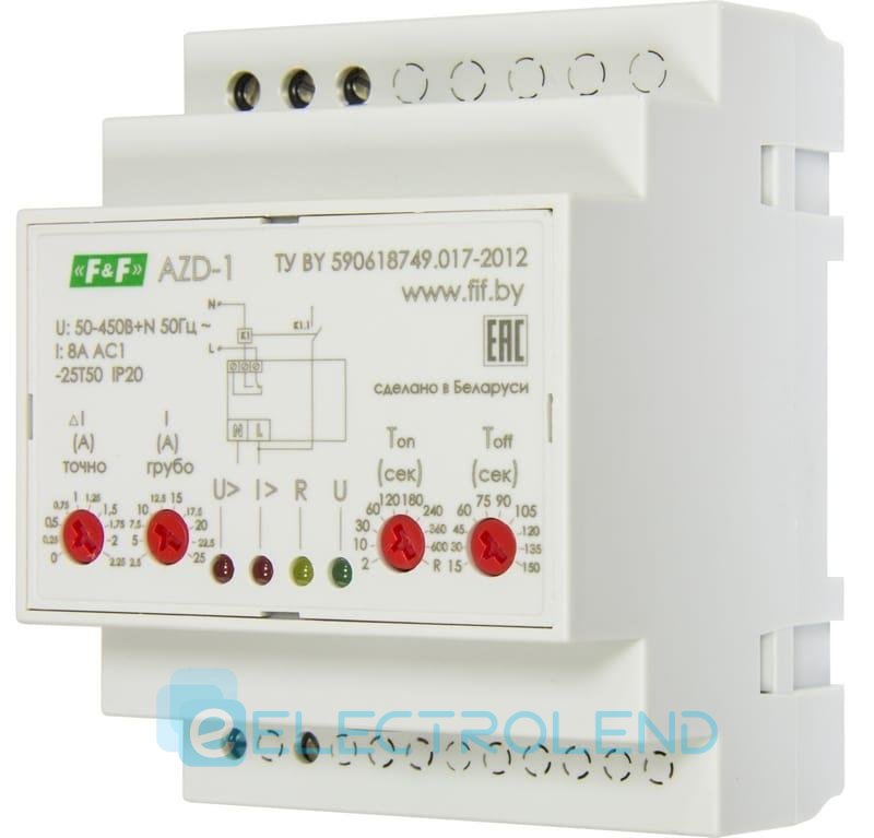 Реле AZD-1 предназначено для непрерывного контроля тока в цепи питания однофазных электроустановок (ЭУ) переменного тока и защитного отключения нагрузки при возникновении аварийных режимов, с целью повышения надёжности их работы и увеличения срока службы.