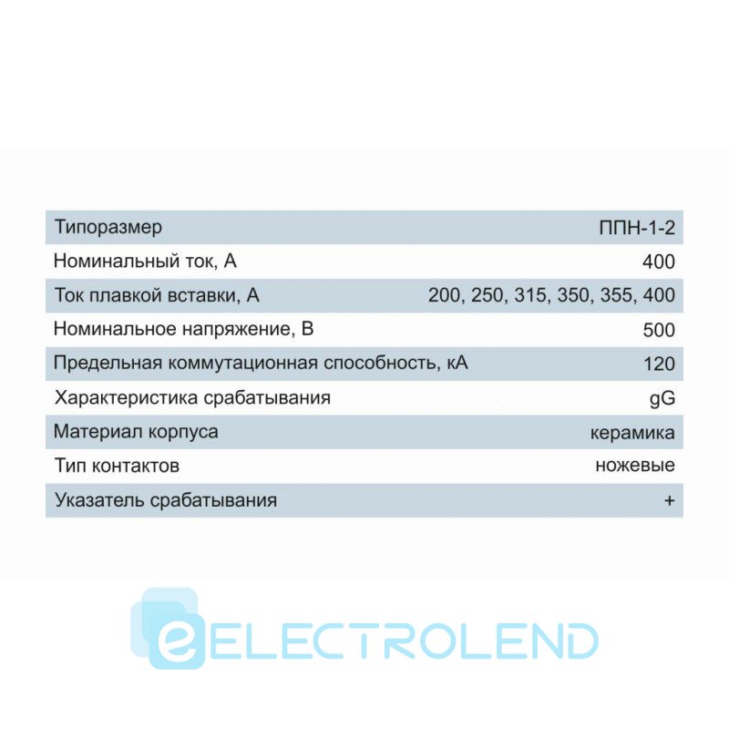 Плавкая вставка предохранителя ППН-1-2, габарит 2, 250А, Electro