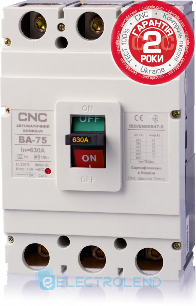 Автоматический выключатель ВА-75, 400А, 3Р, 380B, 55кА, CNC