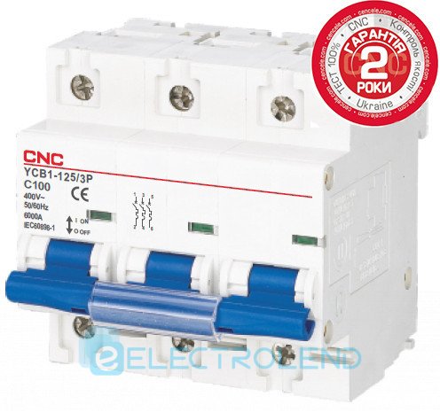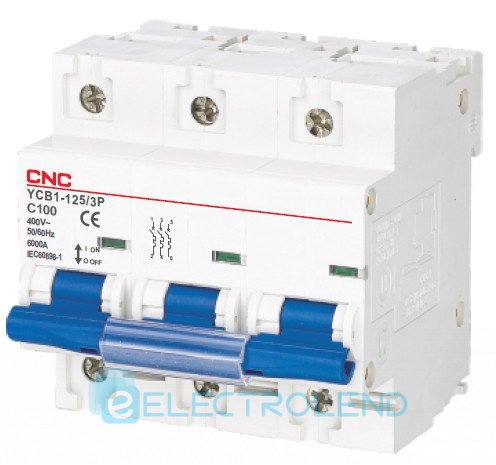 Модульный автоматический выключатель YCB1-125, 3Р, 100А, D, 6kА, CNC