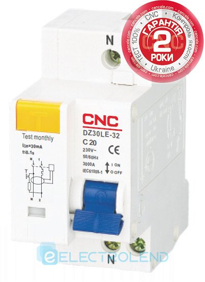 Дифференциальный выключатель DZ30LE-40, 16A, 1Р+N, 30mA, CNC