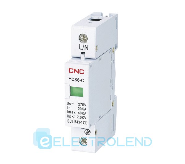Ограничитель импульсных перенапряжений на DIN-рейку YCS6-С, 1P, 275V, 20—40 кA, тип С, CNC
