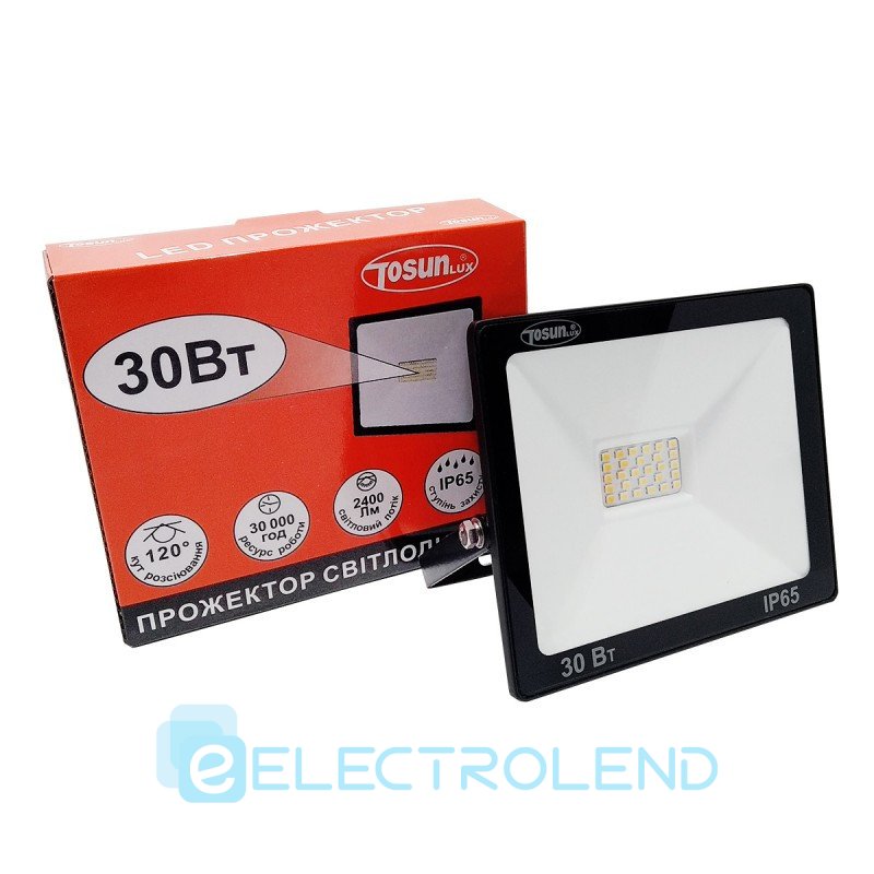 Прожектор светодиодный TF-3 30Вт, 220-260В, 6400K, 2400Lm, корпус черный, Electro