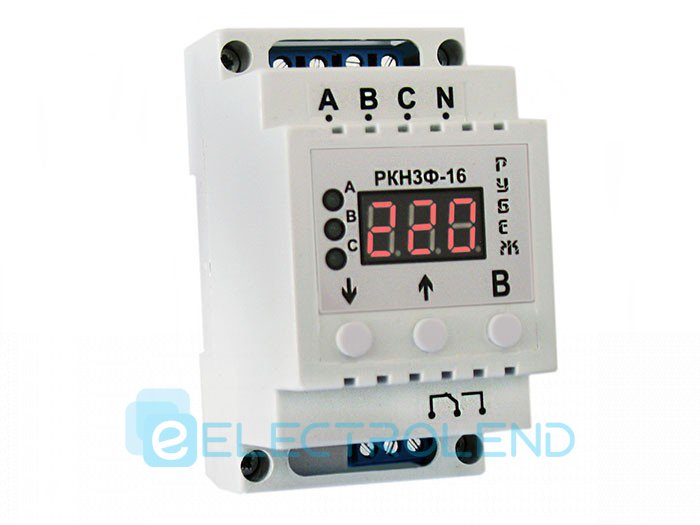 Реле контроля напряжения РКН3Ф-16, 16A, 380B, РУБЕЖ
