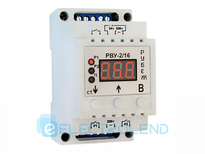 Реле времени двухканальное РВУ-2/16 (в дальнейшем прибор), используется в системах автоматизации для включения и отключения нагрузки, реверса двигателя и т.д. через заданное время. Имеет 2 устанавливаемых времени паузы и два устанавливаемых времени работы реле прибора. Также можно регулировать количество повторов, длительность подаваемого импульса на управляющие контакты, состояние контактов реле, старт программы с первого или второго реле, аварийная остановка работы программы. Прибор может работать в секундах, минутах и часах.