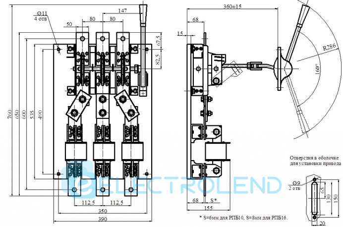 Рубильник РПС-10 1000А с боковым смещенным приводом, с олово, с предохран. 3шт., медно-луж. контакты