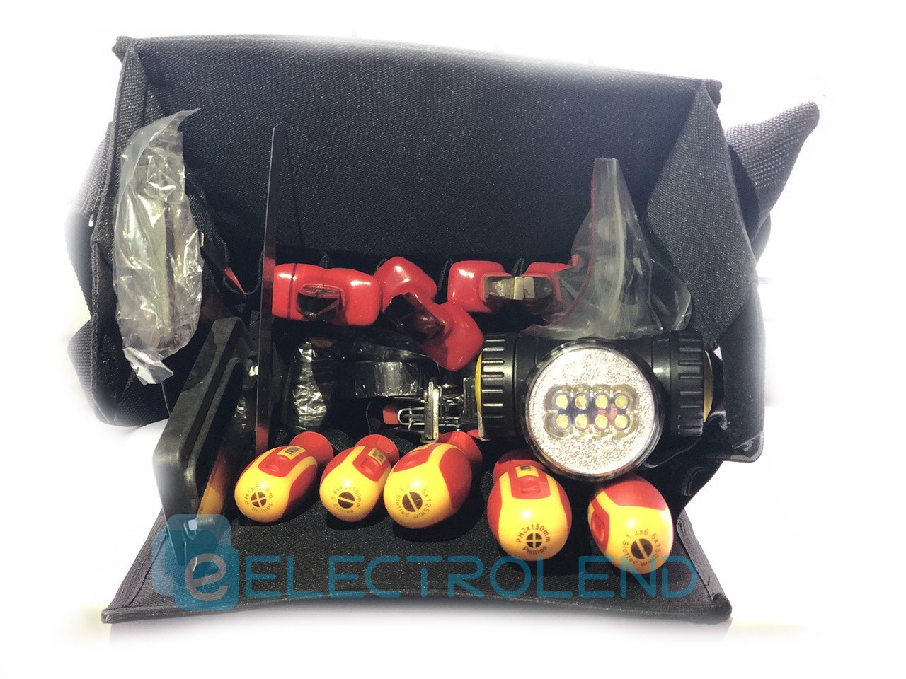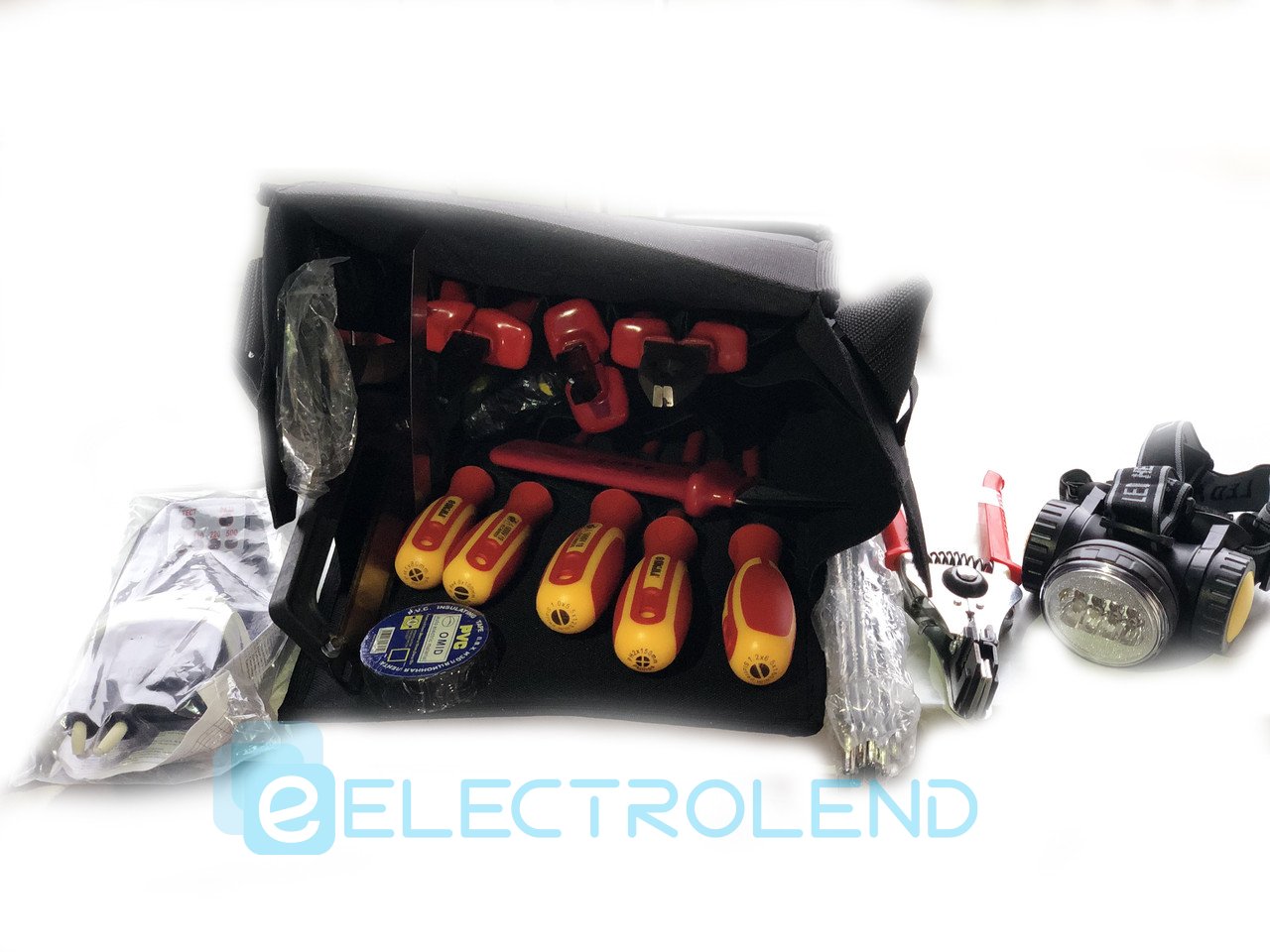 Оснащен качественным ручным электромонтажным инструментом ведущих производителей мира, и удобной сумкой для инструмента, что позволяет всегда иметь у себя под рукой весь необходимый инструмент для быстрого и качественного монтажа электрооборудования. Также наши наборы прекрасно подойдут для использования в домашних условиях либо на даче.