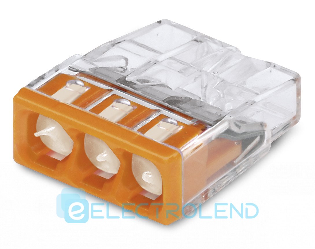 Клемма WAGO на 3 провода самозажимная пружинная прозрачная/оранжевая с пастой (2273-243)