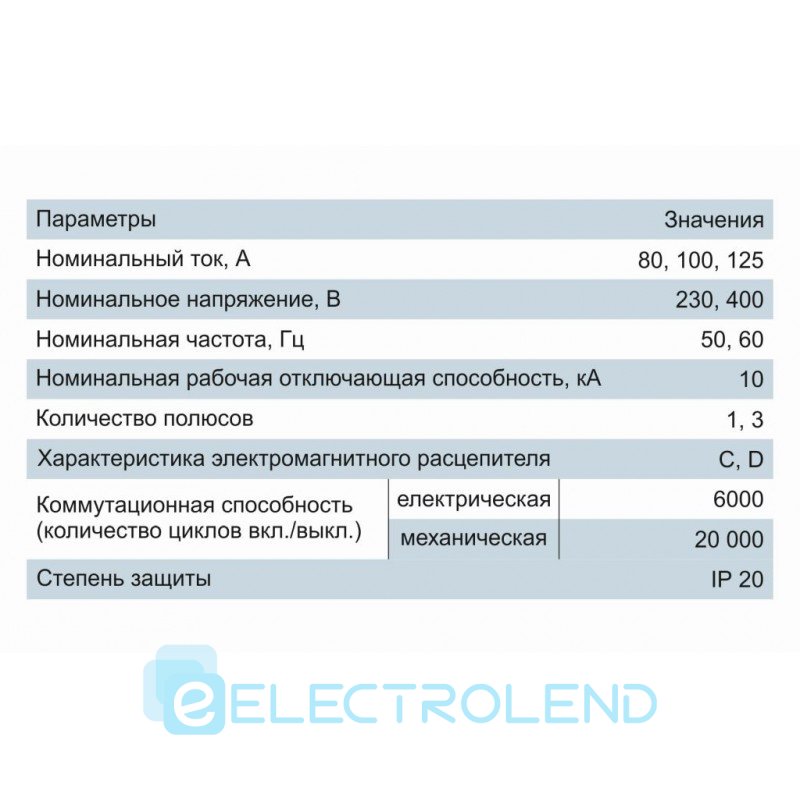 Автоматический выключатель ВА 63-100 10kA 80A 1P D Electro