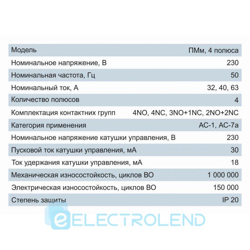 Пускатель модульный ПМм 4P 40A 3NO+1NC 400В Electro