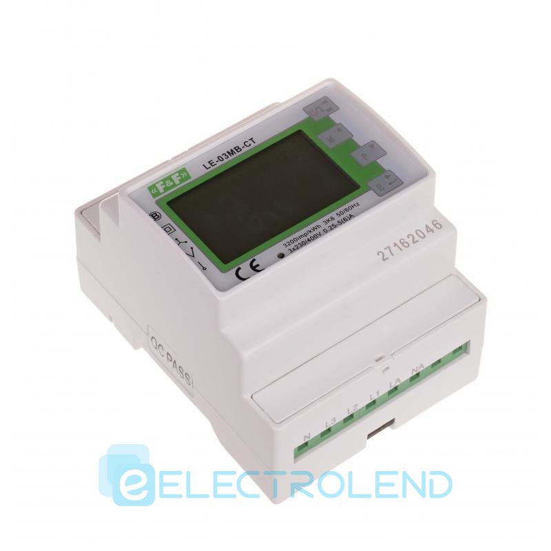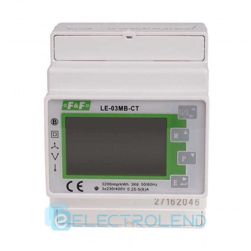 LE-03MB CT представляет собой статический (электронный) калиброванный счетчик электроэнергии с однофазным или трехфазным переменным током в полу-непрямой системе. Используется для индикации и регистрации собранной электроэнергии и параметров электросети с возможностью удаленного считывания показаний по стандартной проводной сети M-Bus. Счетчик работает с трансформаторами тока (ТТ) с вторичным током 1А или 5А. Настройка счетчика осуществляется через меню конфигурации, доступное с передней панели, и через коммуникационный порт в соответствии с функциями программирования M-Bus.