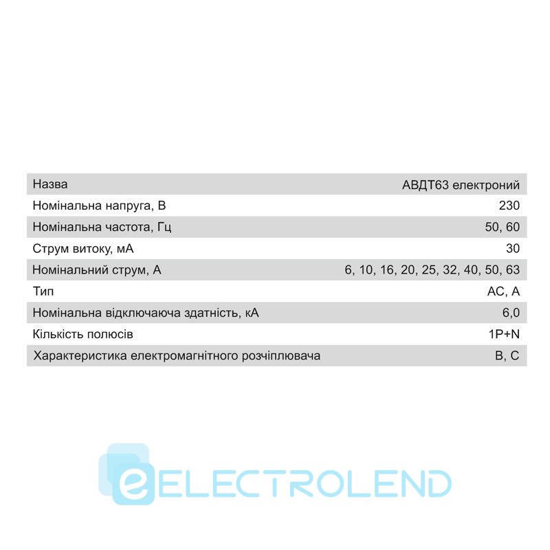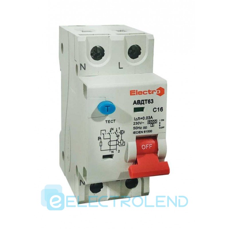 Дифференциальный автомат АВДТ63 1P+N, 32А, 30мА, 6kA, АС, Electro