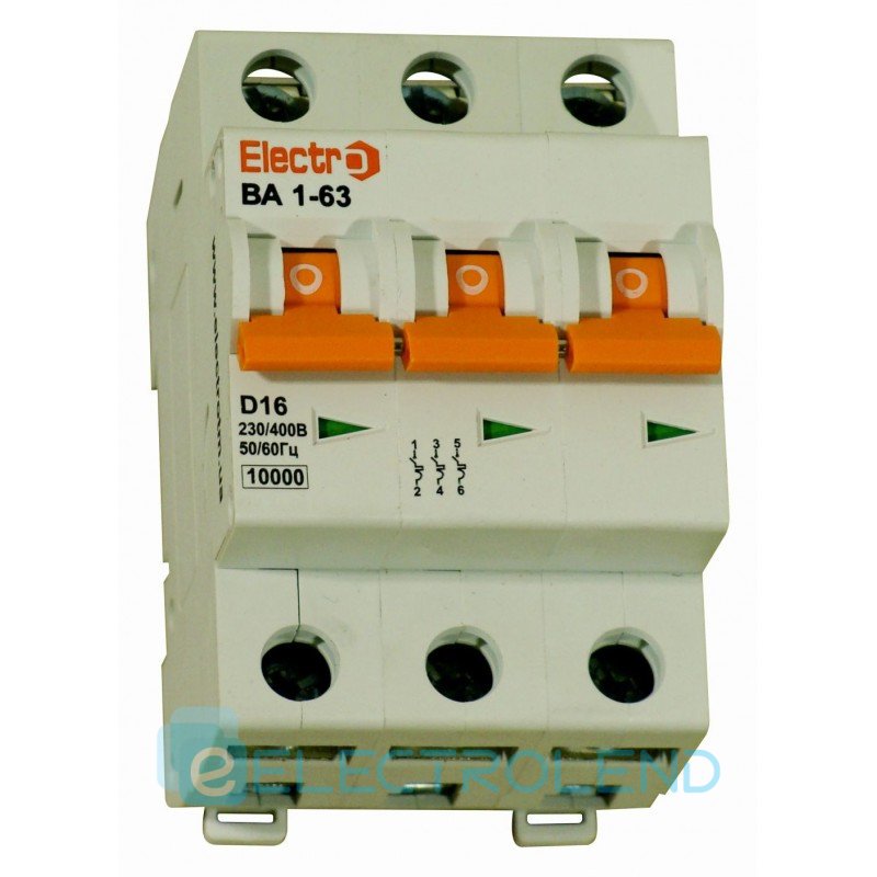 Модульный автоматический выключатель ВА1-63 3P, 10A, 10кА, D, Electro