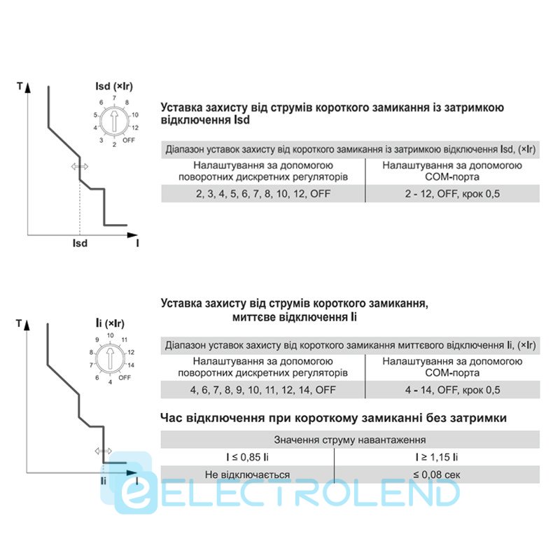 Диапазон регулировки уставки защиты от КЗ (с задержкой) | 2-12 In, Off |