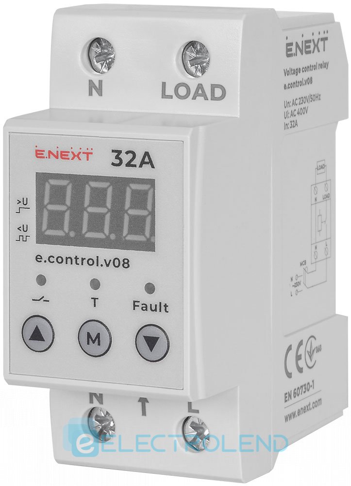 Однофазное реле контроля напряжения 32 А с индикацией e.control.v08 p0690013