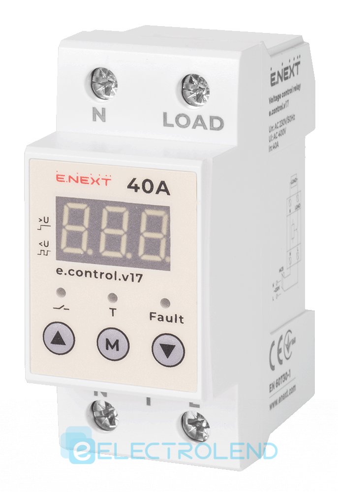 Однофазное реле контроля напряжения 40 А с индикацией e.control.v17 p0690027