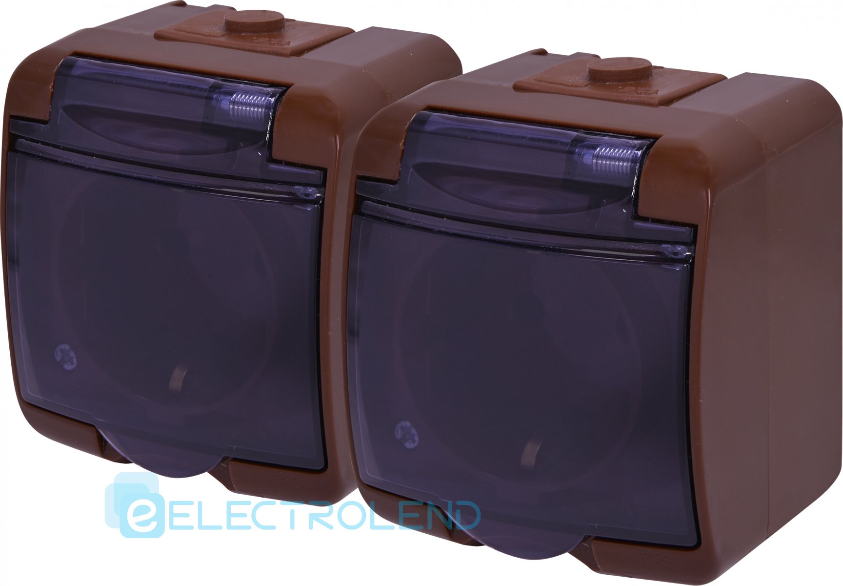 Розетка 2-на с з/к Schuko RHE-2sd-KR (коричн./прозрачная крышка, IP54) ETI 4668053
