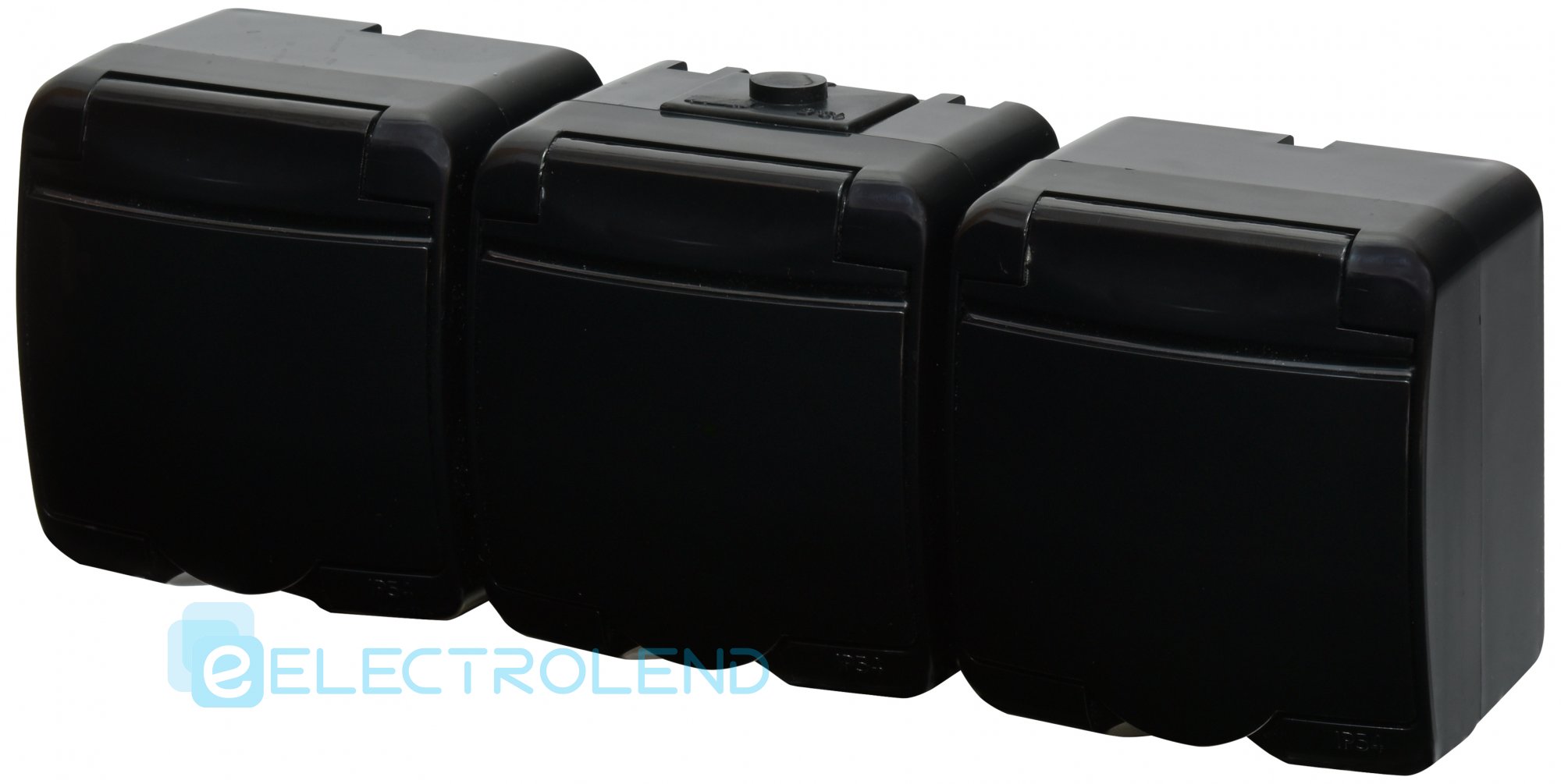 Розетка 3-на с з/к Schuko RHE-3s-BL (черн./черная крышка, IP54) ETI 4668095