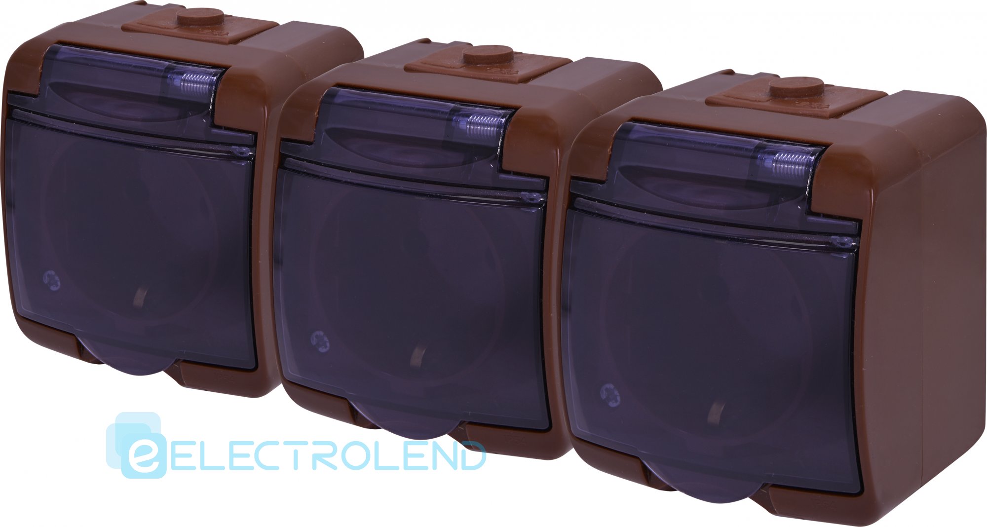 Розетка 3-на с з/к Schuko RHE-3sd-KR (коричн./прозрачная крышка, IP54) ETI 4668055