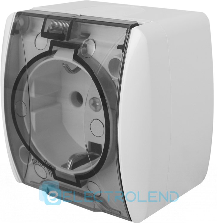 Розетка одинарная e.aqua.1231.grt с з/к, для наружного монтажа, IP54, крышка прозрачная s035058