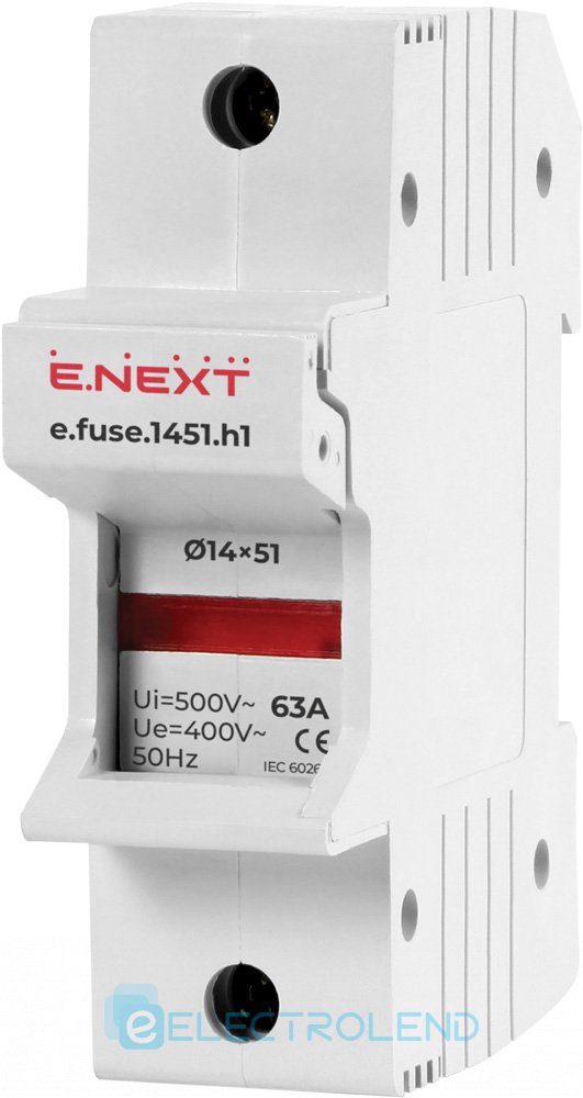Держатель предохранителя на DIN-рейку e.fuse.1451.h1, под предохранитель 14x51, 1-полюсный, 63А i0300004