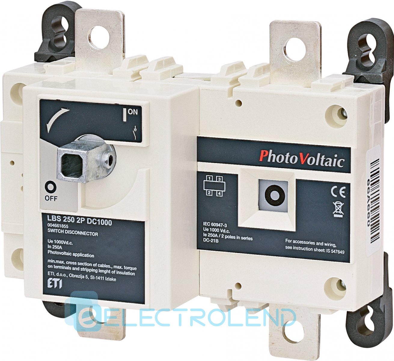 Выключатель нагрузки LBS 250 2P DC1000 ("1-0", 250A, 1000V DC) ETI 4661855