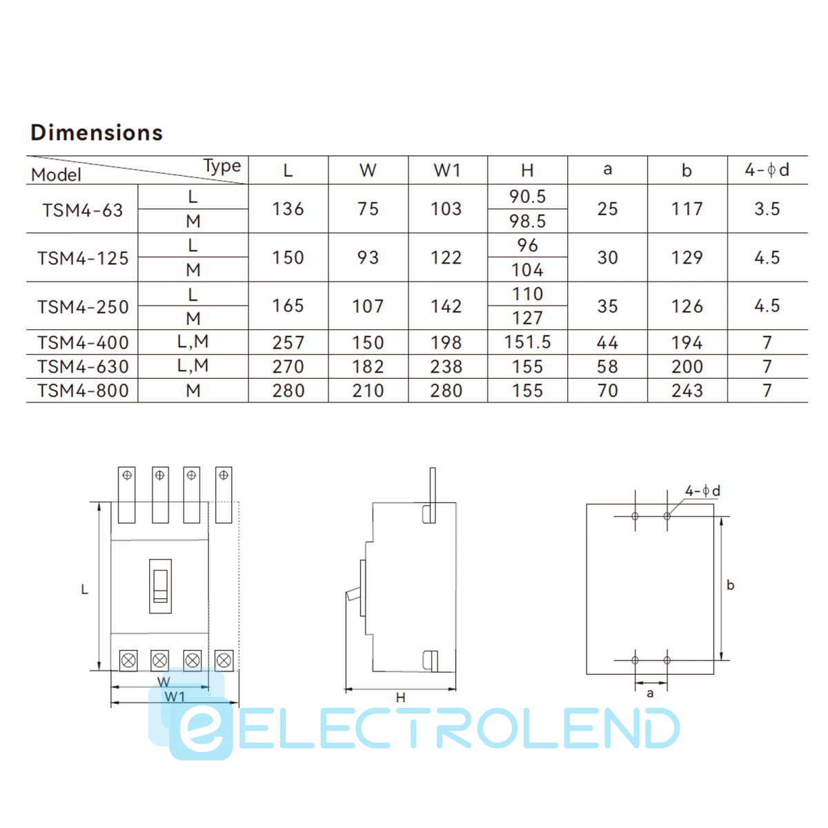 Силовий автоматичний вимикач TSM4-125M 22/30kA 50A 3P TOSUNLux