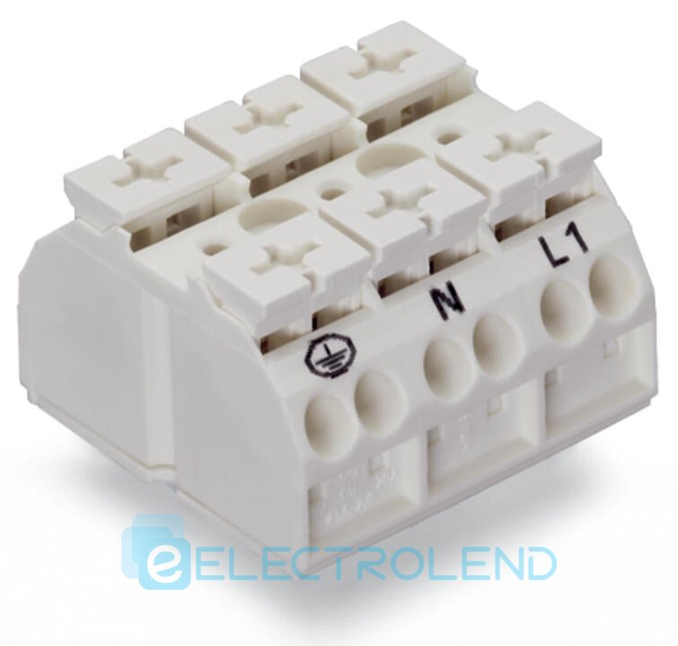 Триполюсна чотирипровідна PE-N-L1 клема Wago 862-9603 Push Wire (біла)