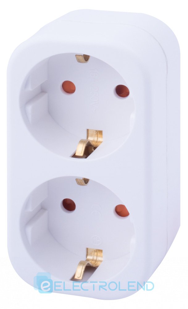 Трійник побутовий e.socket.002.16.3, 2 гнізда, 2P+PE, 16А, з заземленням s9100054