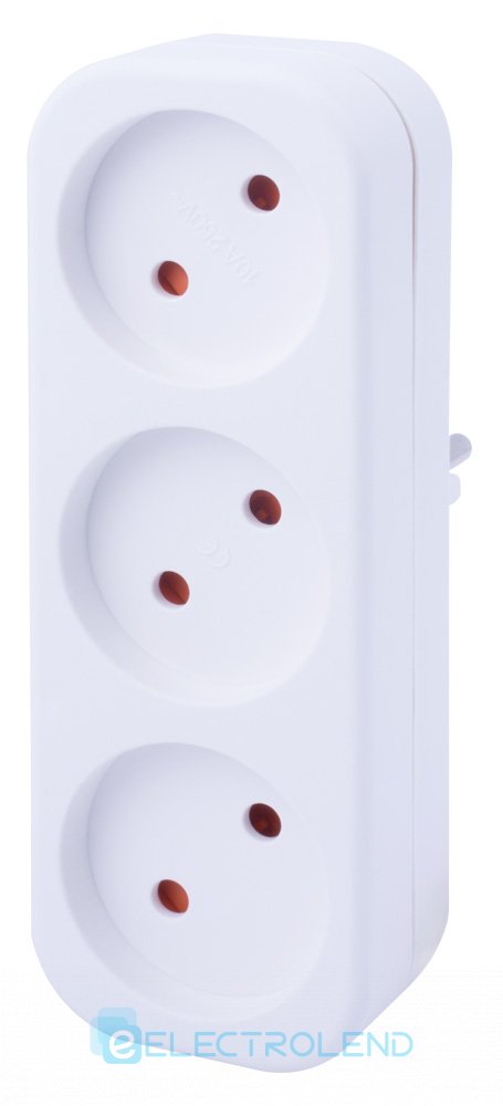 Трійник побутовий e.socket.003.10.2, 3 гнізда, 2P, 10А, без заземлення s9100053