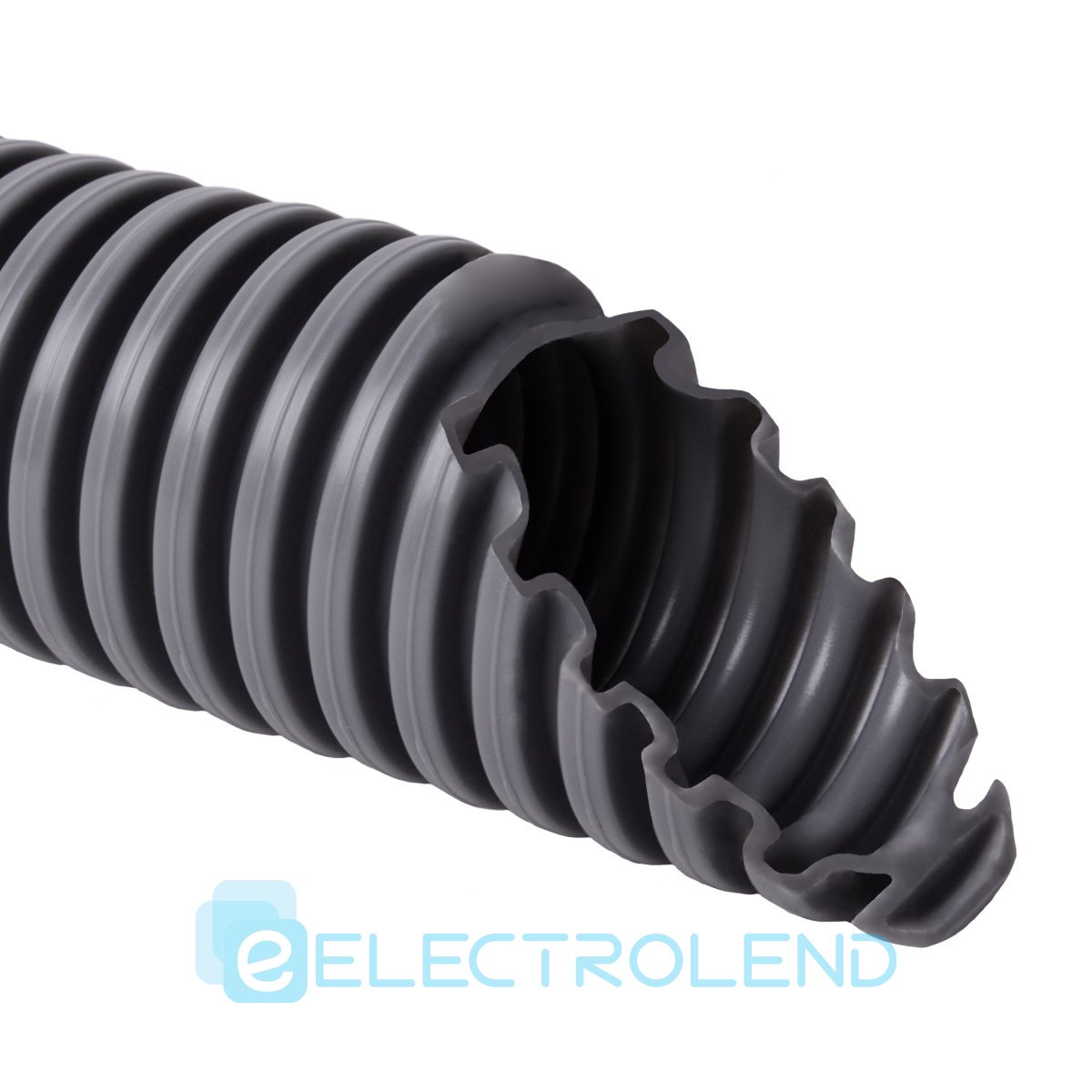 Труба гофрована електромонтажна 750N/5см безгалогенна; Ø25мм; ПП; сіра; Бухта 100 м