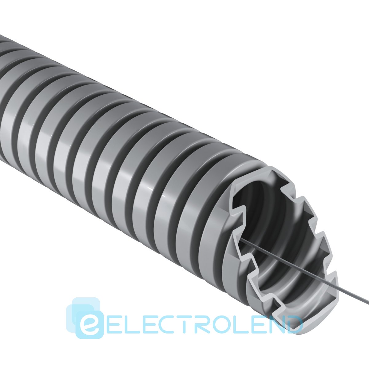 Труба гофрована електромонтажна з протяжкою; самозагасаюча; 320 N/5см; Ø40мм; ПВХ; світло-сіра; Бухта 25 м