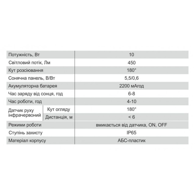 Світильник на сонячній бататарее TS 10Вт, IP65, 450Lm, 2200 mAh, датчик руху до 6-8m, кут 180, Electro
