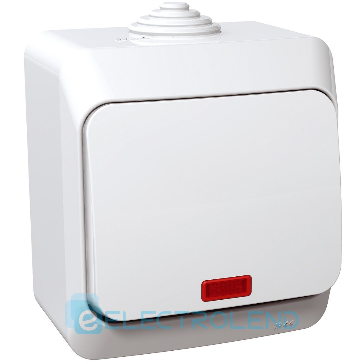 Вимикач 1-клавішний з підсвічуванням білий серія Cedar Plus IP44, Schneider Electric