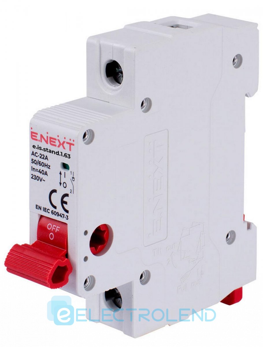 Вимикач навантаження на DIN-рейку e.is.stand.1.63, 1р, 63А s082002