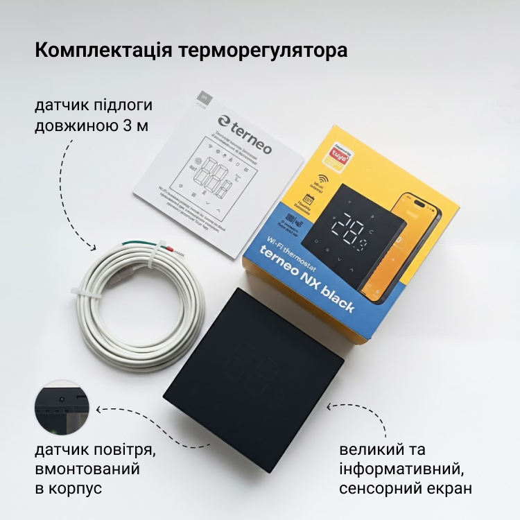 Wi-Fi терморегулятор Terneo NX black з підтримкою екосистеми Tuya
