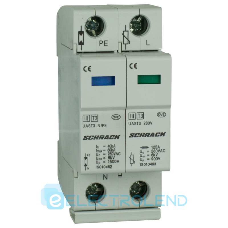 Захисний грозорозрядник UAS клас D 1P+N 10kA 280В Schrack IS010460
